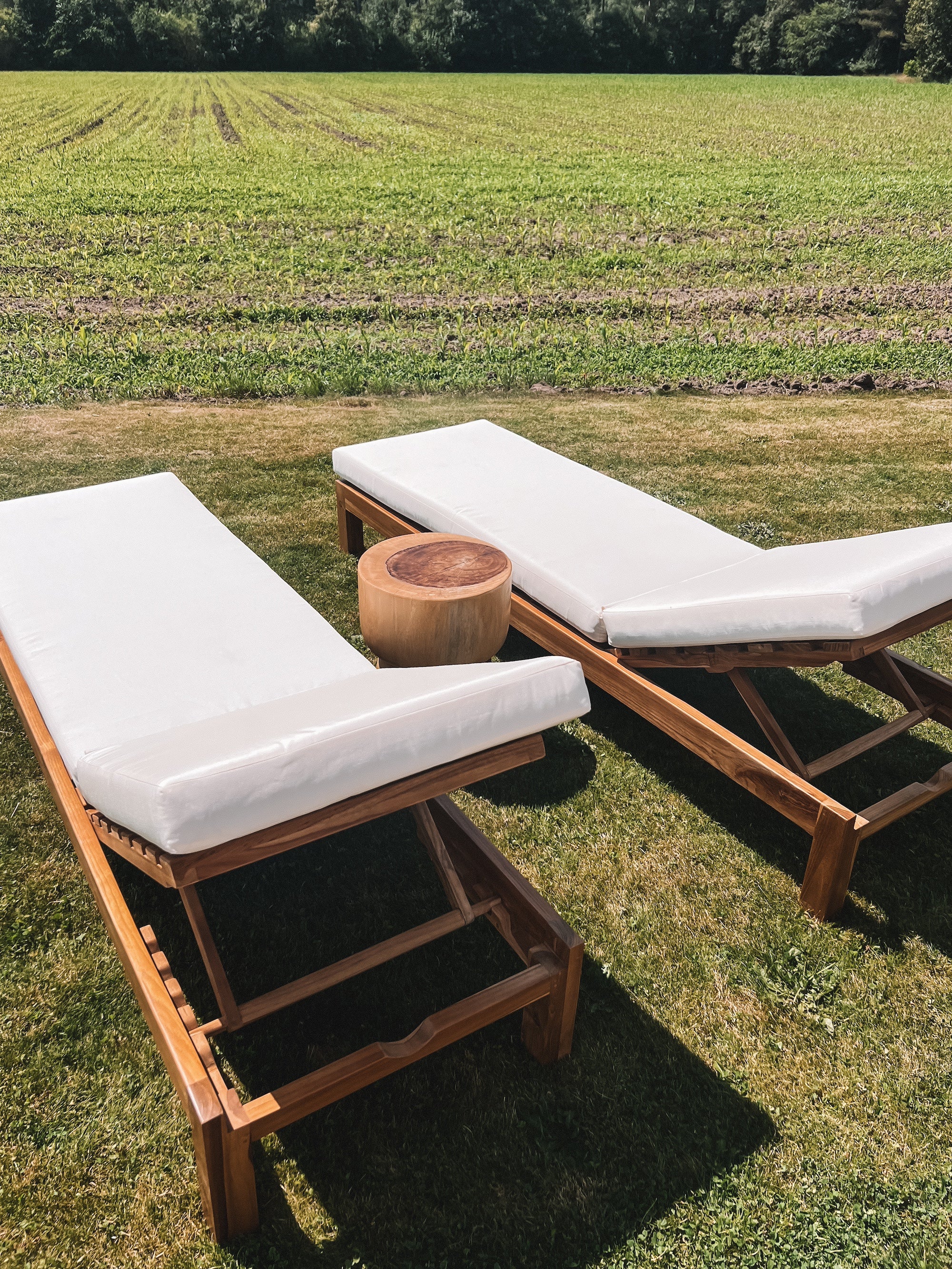 Zonnebed: teakhout. Kussen: schuim met hoes van olefin